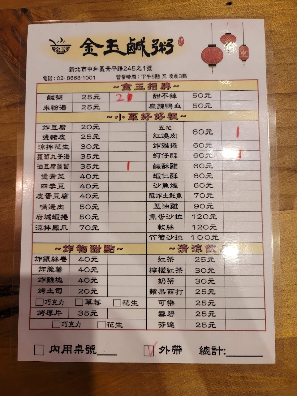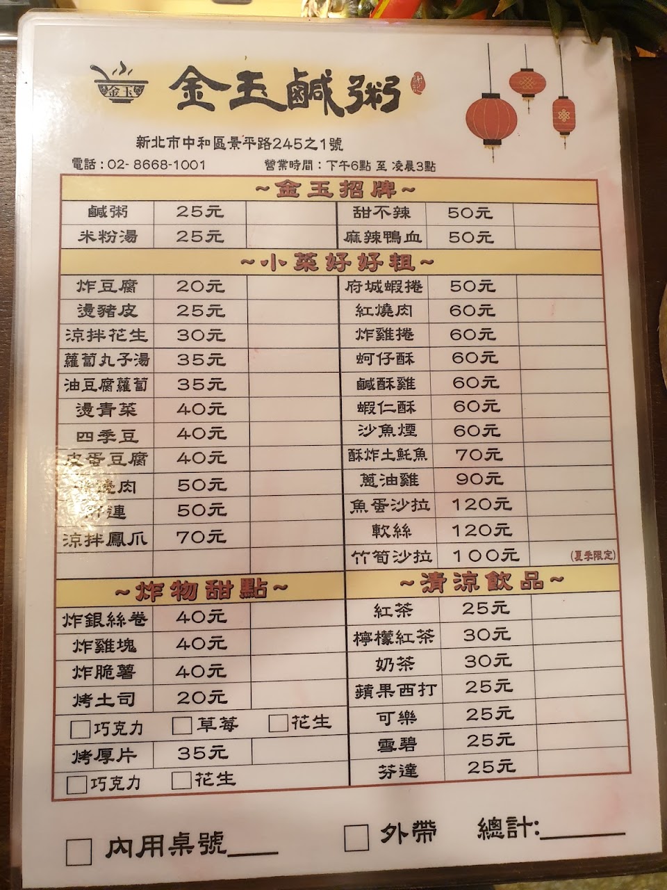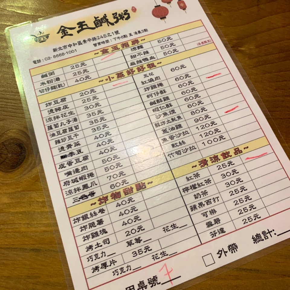 2024最新在地推薦餐廳的菜單_金玉鹹粥的菜單、圖片