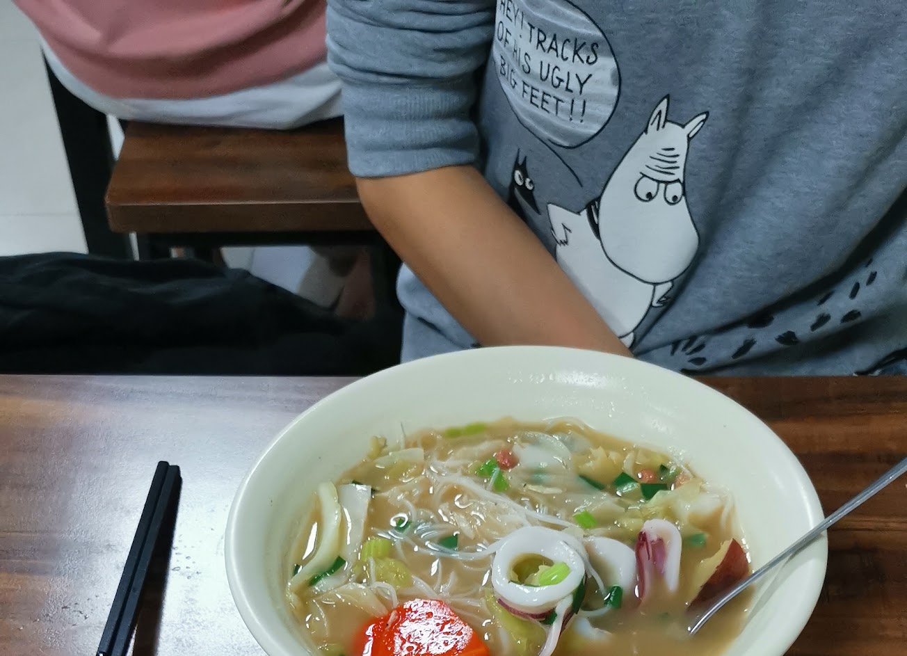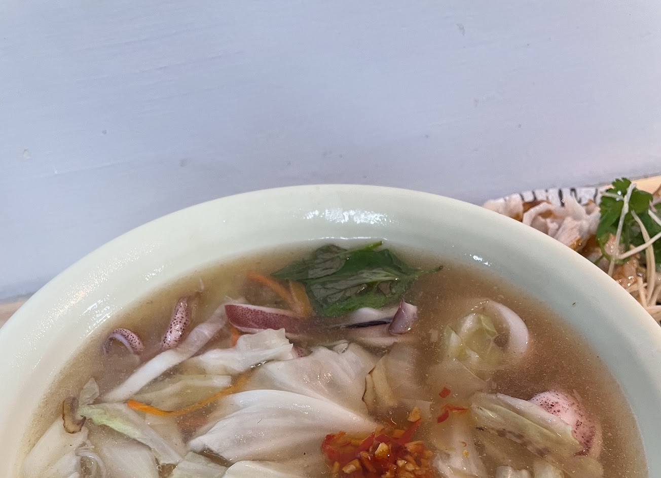 Fresh vegetable and squid rice noodle soup NT$100: The soup is sweet and fresh with vegetables such as cabbage and carrots?, and the squid is fresh and tender. It’s a home-style dish that tastes healthy.
