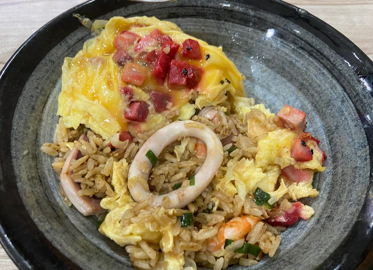 海鮮炒飯超好?蝦子大隻,透抽也給很多,而且開很晚,讓服務業下班的人也能吃到宵夜 …