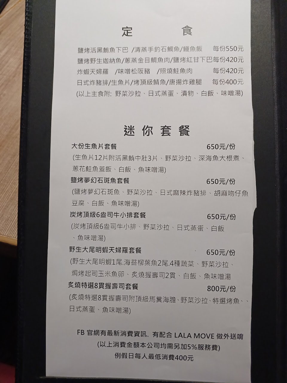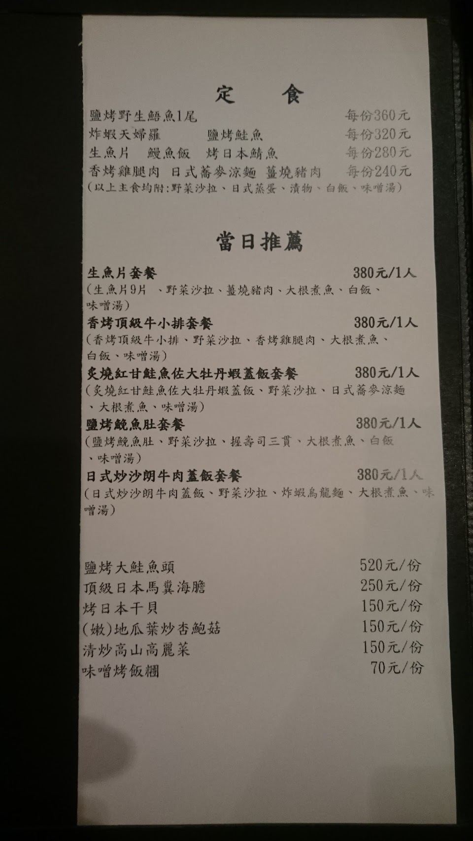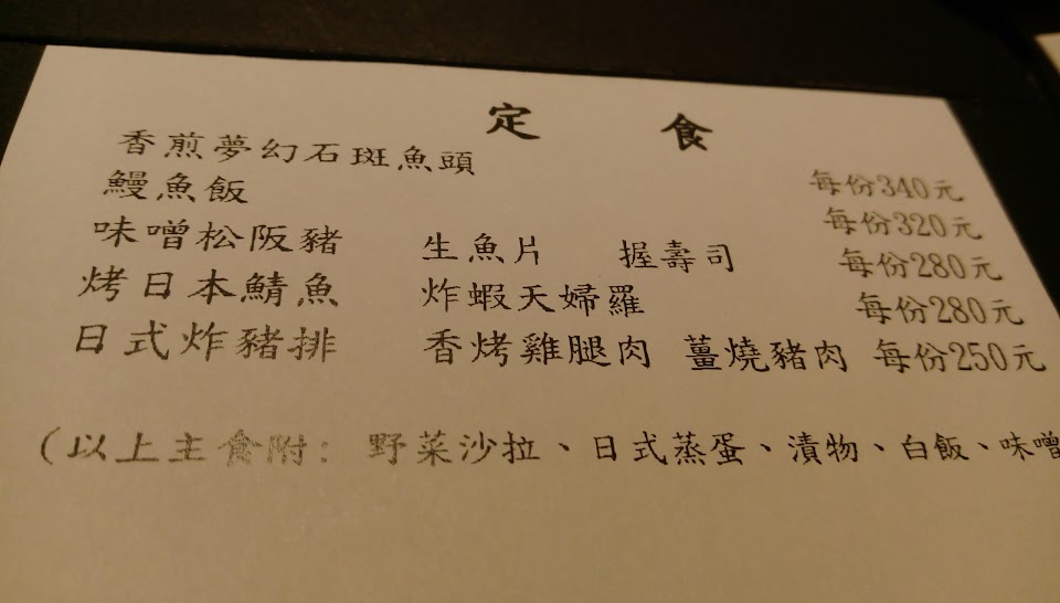 PS. 菜單不定時會做更換,遇到母親節、父親節等特殊節日可能不會提供一般定食。