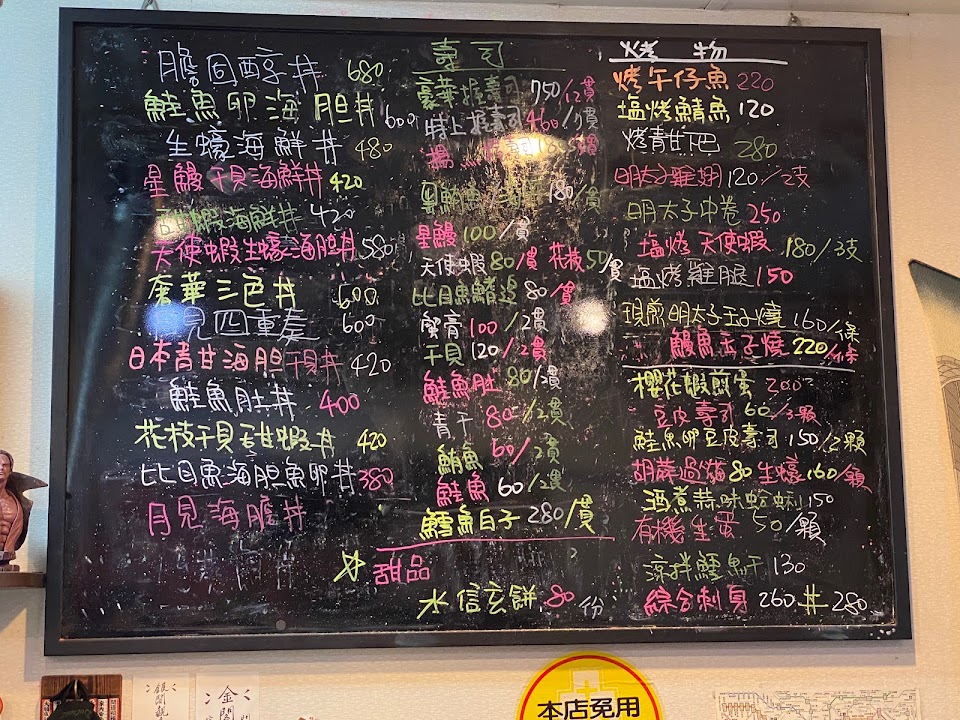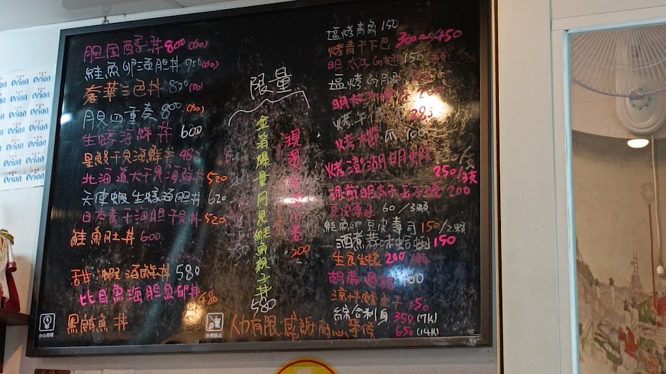 丼飯不錯,料算多,生魚片很優,相當新鮮,小貴,人潮很多,平日中午一樣要排隊,服務不佳,整體不錯