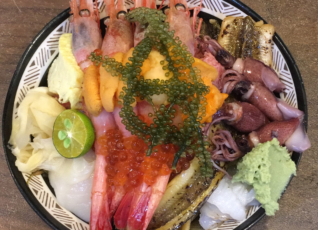 $450隨意丼,干貝、天使蝦、鮭魚、海葡萄、比目魚。所有食材都很新鮮好吃,除了比目魚還好像一般魚肉,沒有驚艷。
