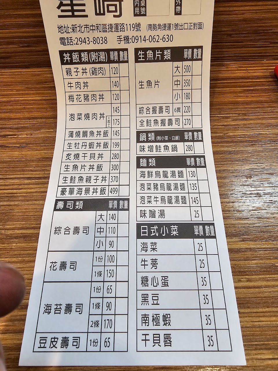 生魚片 好吃 新鮮 ! 味道好!交通又方便! 服務 內用 餐點類型 午餐 平均每人消費金額 $1-200 餐點:5 服務:5 氣氛:5 建議的餐點 烏龍湯麵