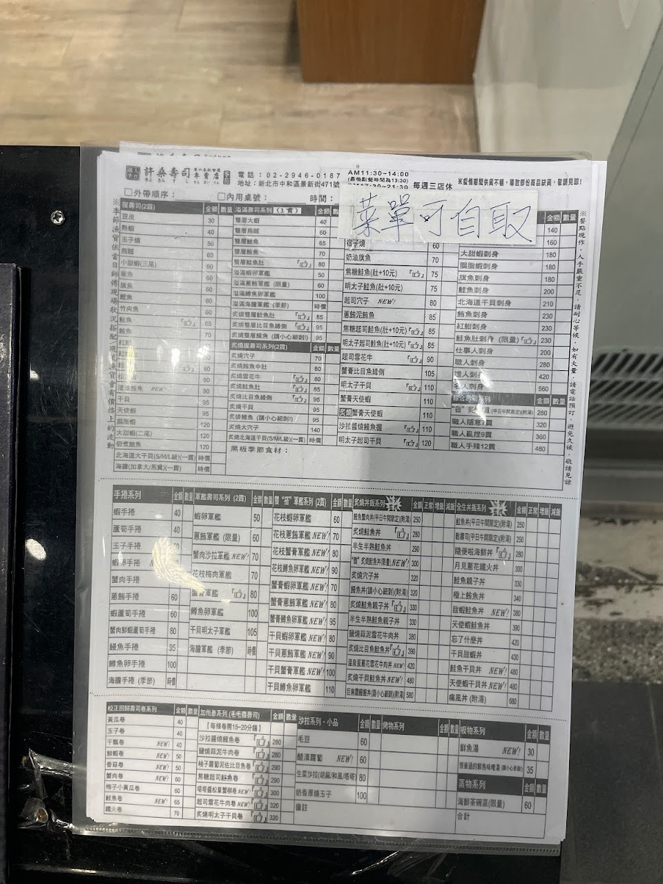 2024最新在地推薦餐廳的菜單_許桑壽司的菜單、圖片