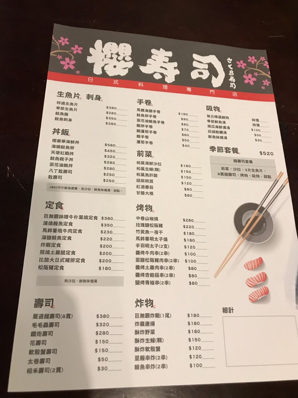 整體來說,之後還是會選信壽司比較習慣。可能因為這次用餐經驗環境很悶所以不太想再來。櫻壽司的主食可以選壽司或飯,這次選了壽司但只有三個。相對起來,比較喜歡信壽司每一樣餐點都熱騰騰的,從茶、湯、主餐、蒸蛋都很讚。而且信壽司上菜速度穩定,今天來櫻壽司碰到人手好像不足的問題,老闆一邊要料理一邊要點餐送餐,太辛苦了。