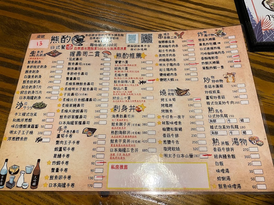2024最新在地推薦餐廳的菜單_熊酌 日式餐酒 (壽司/串燒/寵物友善/聚餐/日本清酒/sake bar)的菜單、圖片
