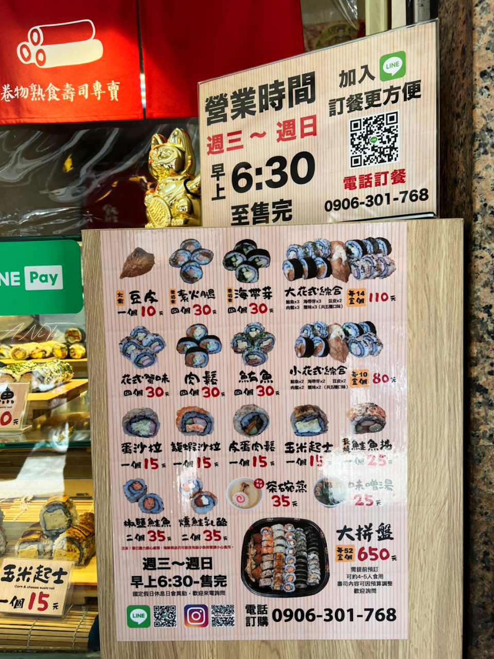 買了起司玉米和鮭魚的壽司還有味增湯和茶碗蒸!茶碗蒸超好吃的推~老闆人超好還贈了一個茶碗蒸??