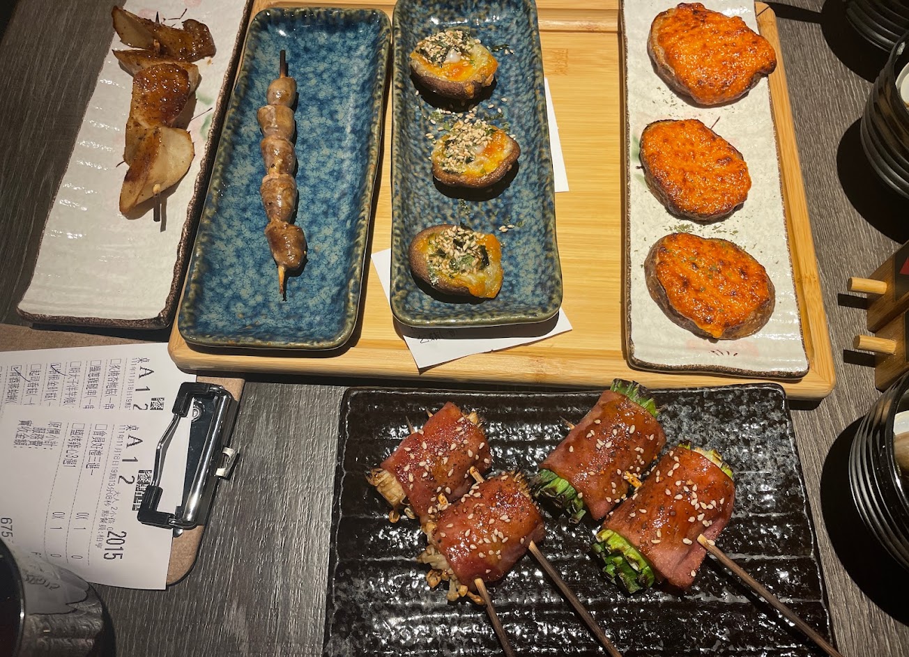 串燒都挺不錯的~~ 推✨培根金針菇、雞腿類的烤物 還有無限供應的湯和飲料