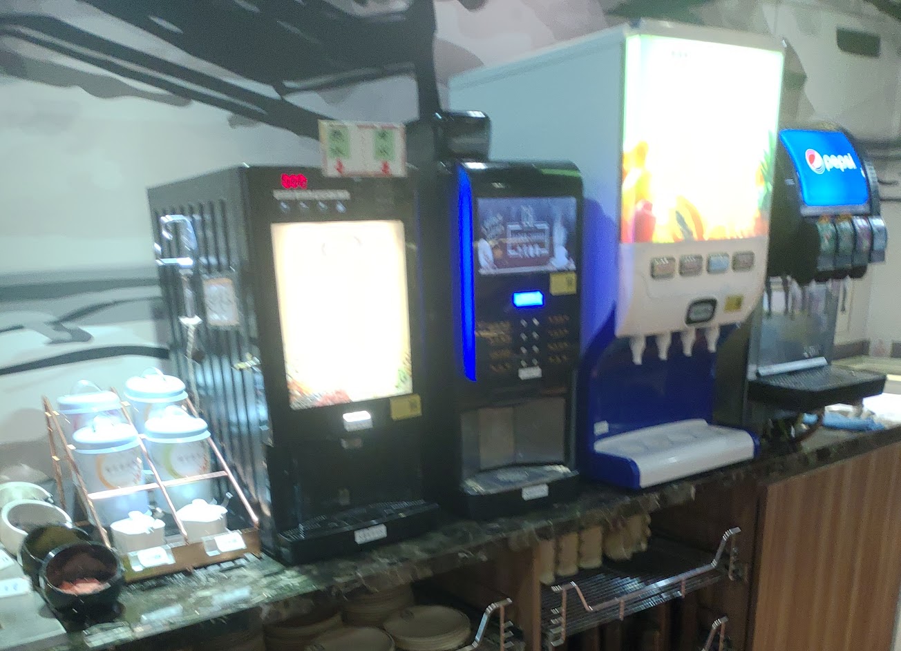 有提供沙拉吧跟飲料吧(有可樂機、咖啡機、茶類與果汁、馬玉山飲品四種、提供熱水可沖泡熱茶與花茶)、冰淇淋有四種口味可以選擇。