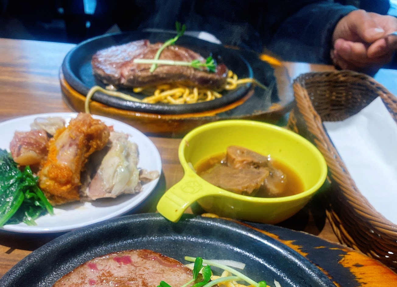 慕名而來的中和店,個人覺得……水果唯一好吃不會雷的食物,還有一堆人搶的炸雞翅。其他真的不行,涼拌菜有的怪味有的酸,白菜滷、麻辣鴨血豆腐,沒什麼香沒入味,主餐點了戰斧豬排,其實有一點點沒熟紅紅,這要注意一下。