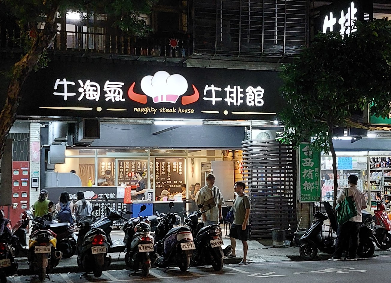 牛淘氣牛排館位置不多,但翻桌率蠻快的,也有外帶服務,其牛排,豬排,魚排及羊排的份量都蠻多的,而且厚度也蠻厚的,牛排大概都八分熟以上,其排餐都附有酥皮玉米濃湯,紅茶及冰淇淋無限量供應,上餐速度蠻快的,建議先吃主餐,酥皮玉米濃湯後食,因為酥皮可保溫玉米濃湯,主餐的牛排,大概都吃不到不新鮮的異味,肉質很有嚼勁,加番茄醬更有味道,也較好吃,其主餐還有麵食及荷包蛋,麵條很軟Q,很好吃,另外冰紅茶也很濃郁,微甜,好喝也能解膩,挪威的鮭魚也很香,肉質油感較少,但魚肉不乾柴,也無腥味,蠻好吃的,另外餐具要自取哦!總之,牛淘氣牛排館的CP值很高,吃完還可以在旁邊4號公園散步,特推!