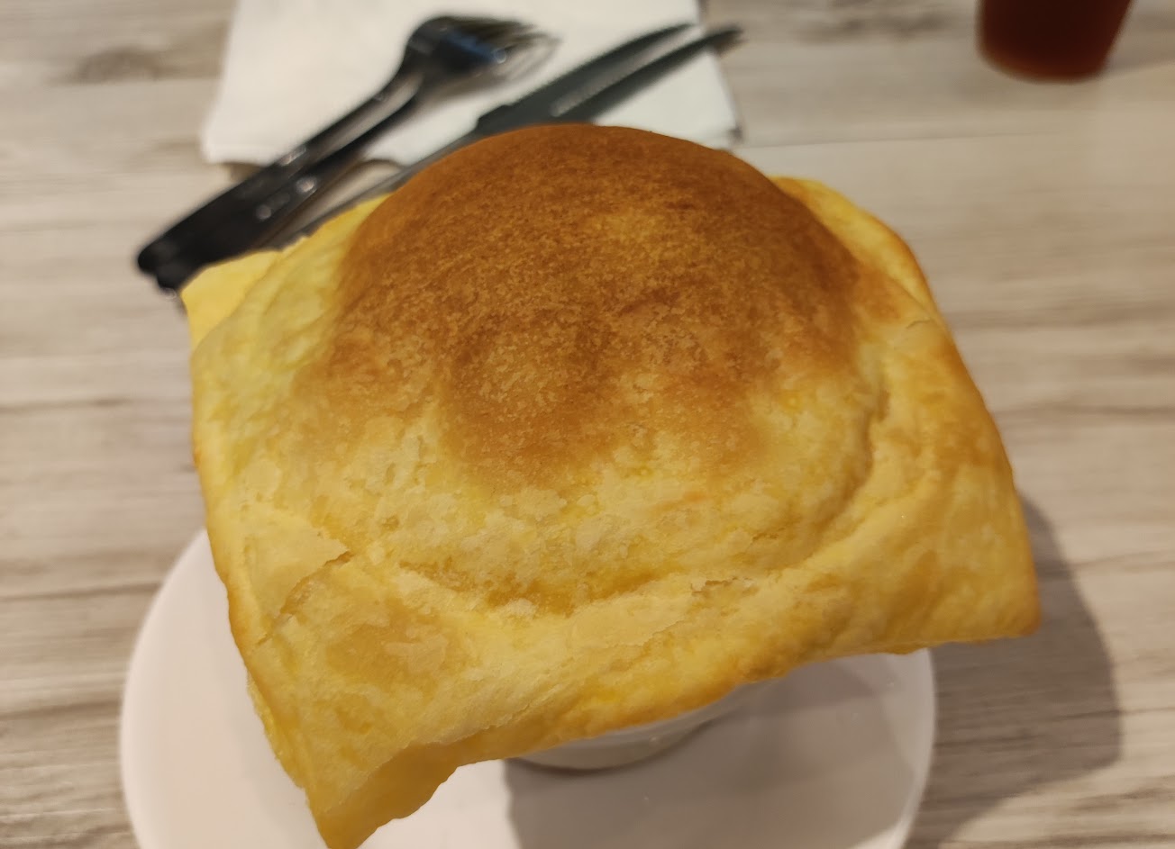 菲力牛排吃得到牛肉的香氣,軟嫩多汁,推薦。酥皮濃湯味道普通。