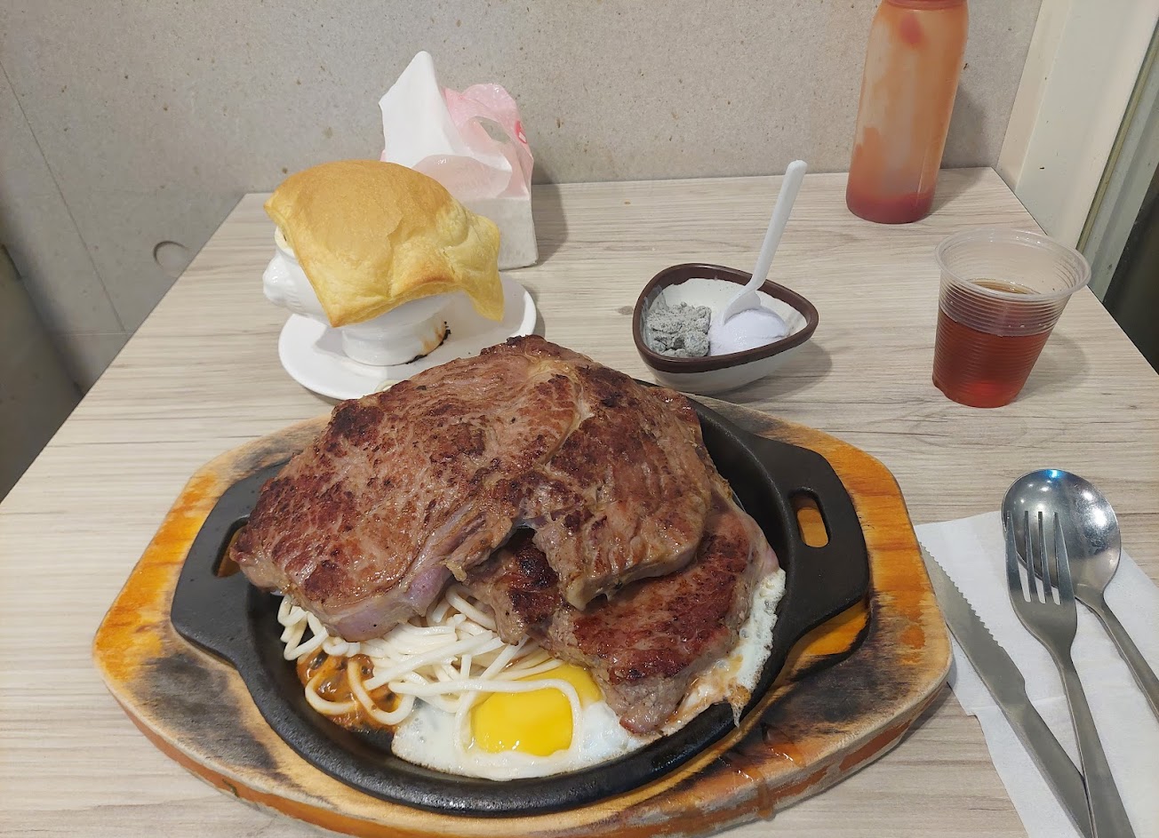 看到評價很高所以來試試,店員有禮貌,用餐空間乾淨但牛排並沒有到驚艷..平價牛排來說..就中規中矩沒有特別好也不會特別雷..對我來說沒有濃湯喝到飽跟只有紅茶一種算是小可惜