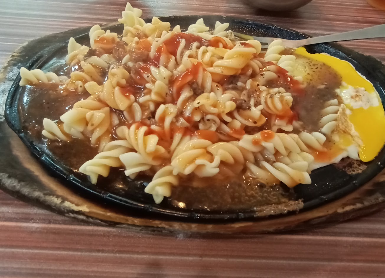 牛排與鐵板麵煮到有點焦味還是送上來,店內用身體會有很重的味道無法散去,雖說很多人吃,但真的不能太期待..就是相對便宜