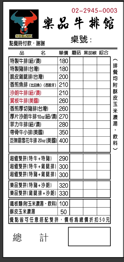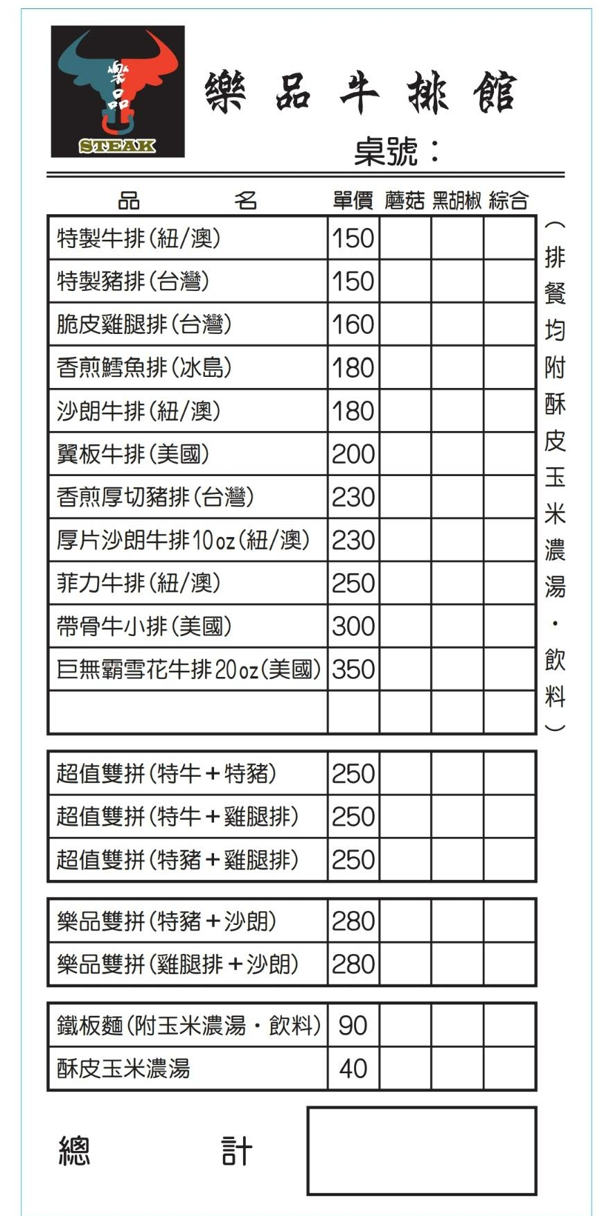 2024最新在地推薦餐廳的菜單_樂品牛排館的菜單、圖片