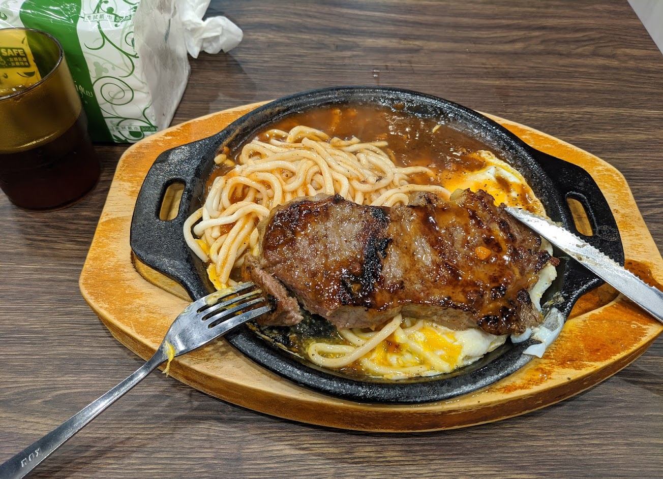 完全符合對這種夜市牛排的期待 不管份量跟價格還有口味 唯一小缺點飲料杯濕濕的 拿起來不是很舒服
