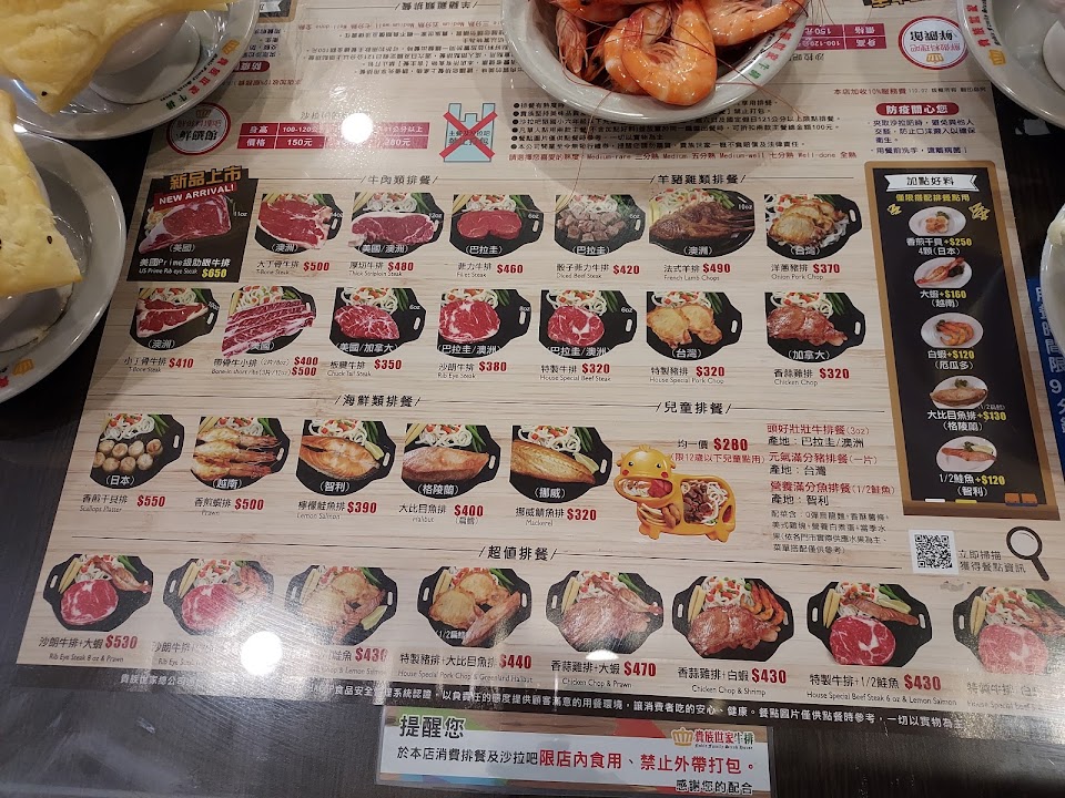 這家的牛肉不行,點的牛小排很難咬,但自助吧的鹹食好吃,服務也不錯,最讓我受不了的是太髒,上次用餐坐在冰淇淋去旁邊,兒子怎樣都不肯坐在靠裡面的位置,因為他說旁邊的櫃子上有蜘蛛網,我看了一下是真的很多;要裝飲料的時候,看到杯子裡有水,擦水的衛生紙上是黃咖色的?不死心想說是個案,我又擦了兩個杯子都一樣,最後不敢用杯子,是拿碗裝飲料。我跟老公說所以這是它們杯子用黑色的原因嗎,髒了看不出來…