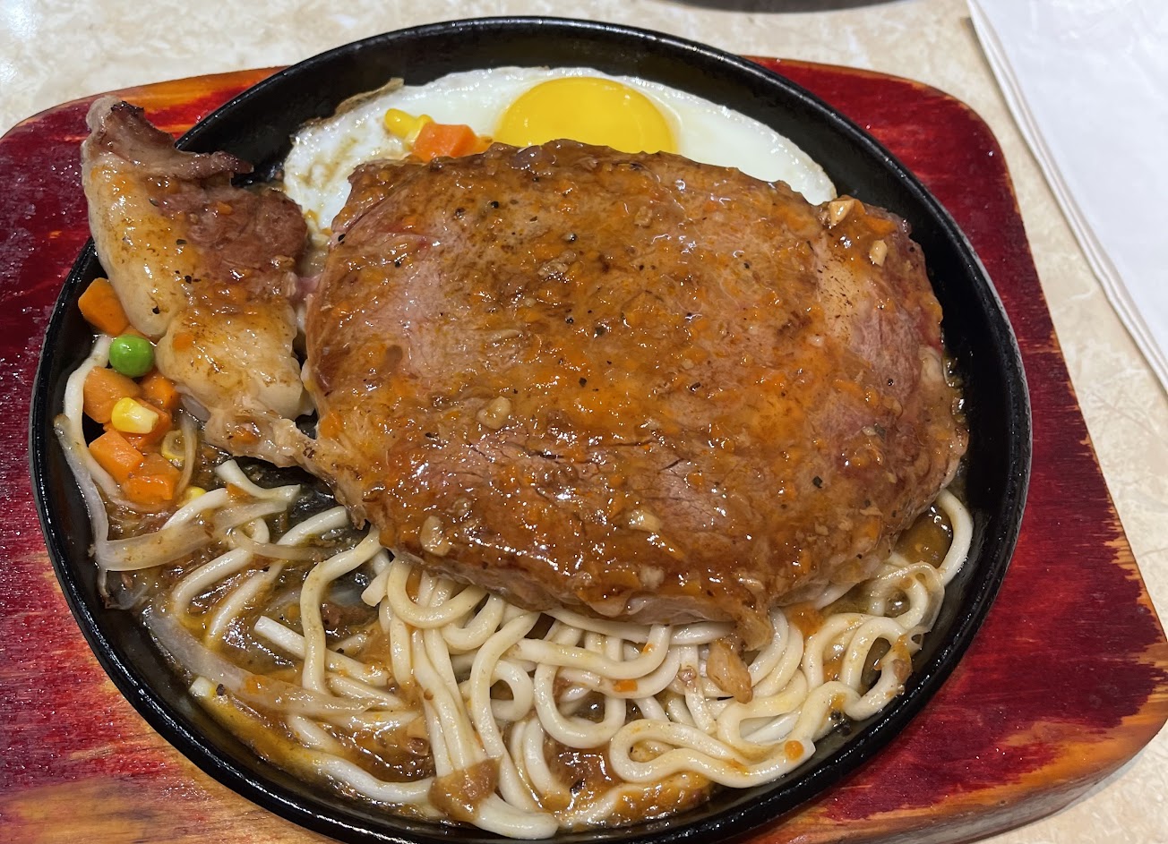 牛排很嫩,麵很Q, 奶茶很好喝不死甜,整體性價比很高,非常棒