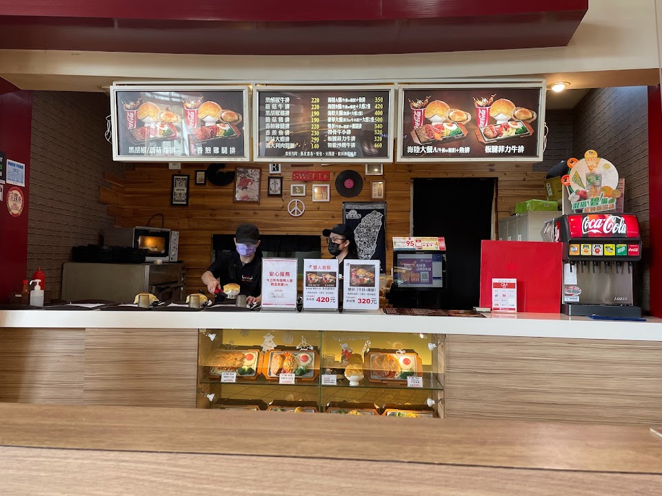 座位區人潮比較多,建議先找到位子再點餐,餐點豐富,現點現做,旁邊的配料番茄醬跟牛排醬如果口味重一點建議多加一些?