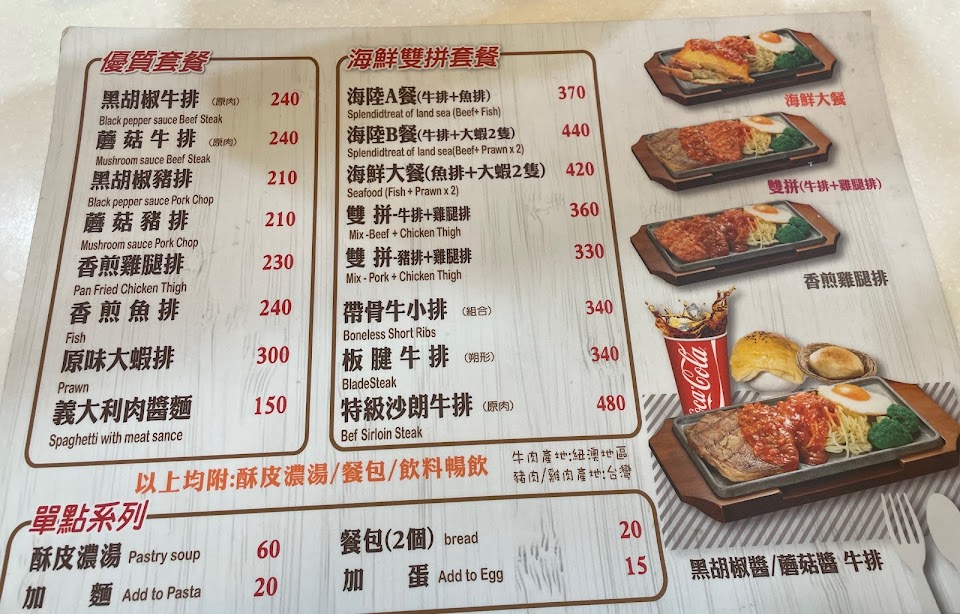 牛排,雞排很美味 服務 內用 餐點類型 午餐 平均每人消費金額 $200-400