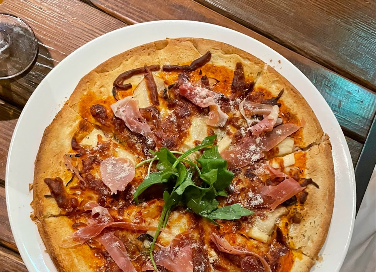 經典夏威夷披薩:那酥脆的外皮讓人久久難以忘記,淡淡的麵香令人記憶滿點。餡料裡的蝦子整尾出現彈口的口感豐富不無聊。