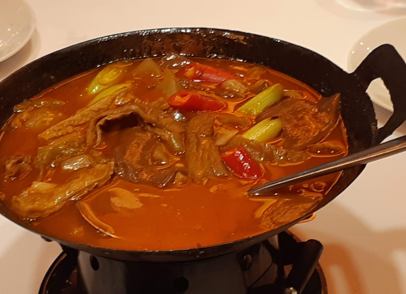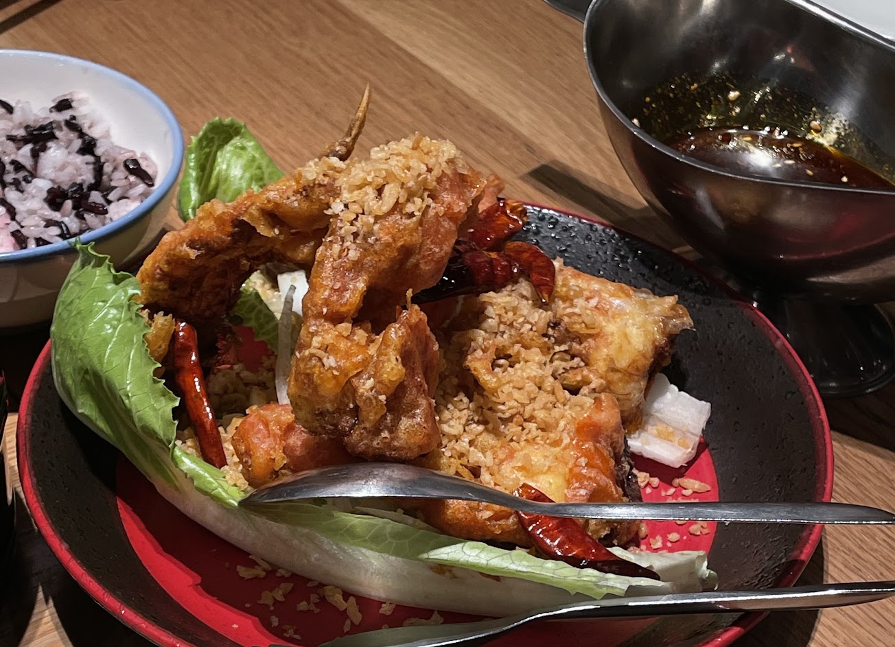 這家店位在環球的4樓,餐廳位子寬敞舒適,店裡到處掛著紅色的燈籠,很有喜慶感!餐點都是帶點微辣,唯一可惜的是無法調整辣度,藜麥飯好吃,每人都必須點一碗,但無限量供應。現場是用手機掃碼點餐,餐點滿值得推薦嫩蔥鮮爆牛,3.5杯雞,媽寶遛個蛋,招牌胡椒蝦,都是下飯的好選擇,很適合家庭聚餐來這裡吃吃。
