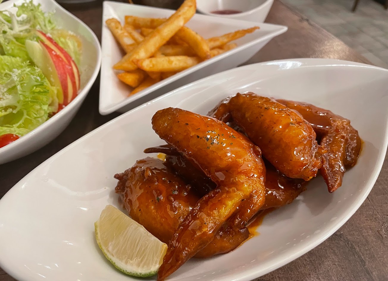 海鮮湯, 海釣中卷, 生菜水果沙拉, 蛤蜊, 紅酒牛肉燉飯, 道地水牛城辣雞翅, 提拉米蘇