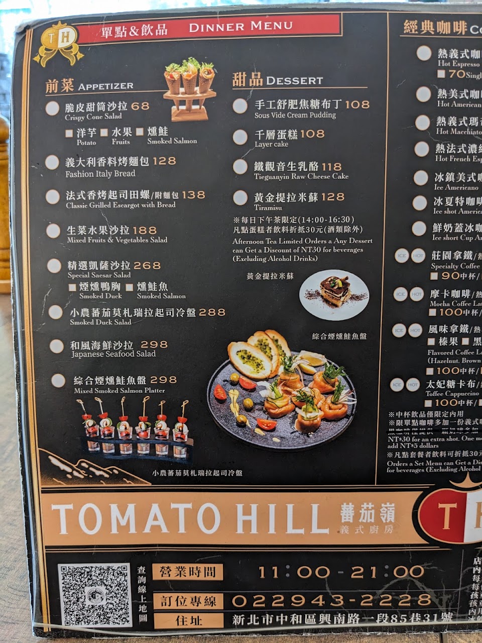 2024最新在地推薦餐廳的菜單_蕃茄嶺義式餐酒館TOMATO HILL 中和南勢角店的菜單、圖片