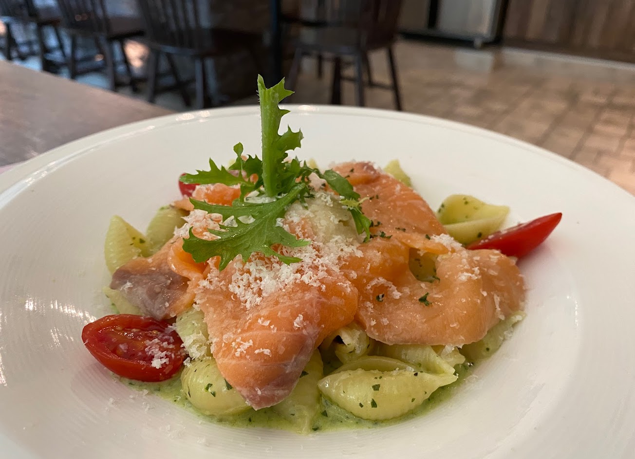濃湯好喝,鮭魚頓飯好吃 服務 內用 餐點類型 午餐 平均每人消費金額 $400-600 餐點:5 服務:5 氣氛:5 建議的餐點 青蘆乳酪燻鮭魚燉飯