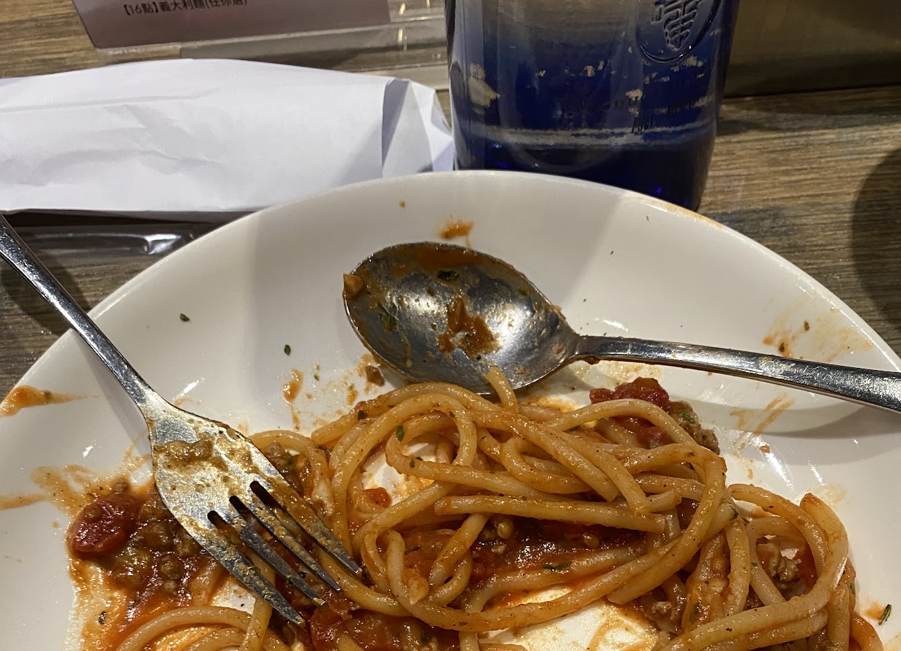 肉醬麵用的是超粗的麵還很硬感覺沒有很熟