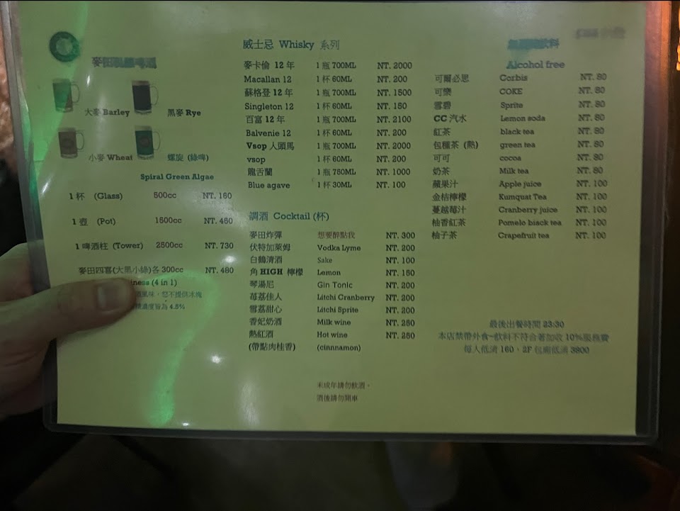 綠色啤酒好喝,聽說這裡的啤酒是使用宜蘭的麥田!食物好吃份量足夠,可以約三五好友來這裡用餐聊天看運動賽事~