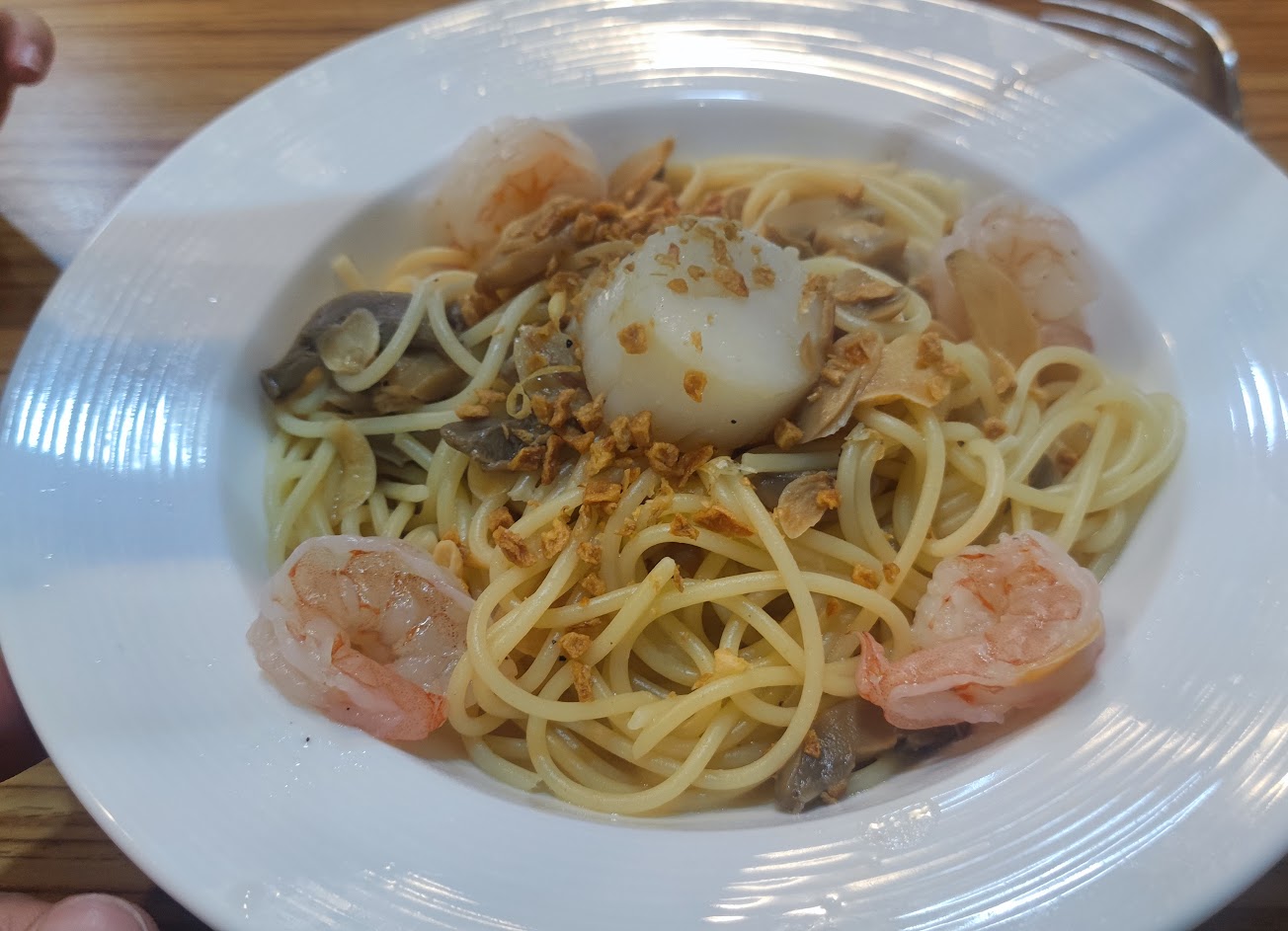 餐點好吃(蝦子很大又新鮮)南瓜海鮮湯味道濃郁 用餐環境乾淨