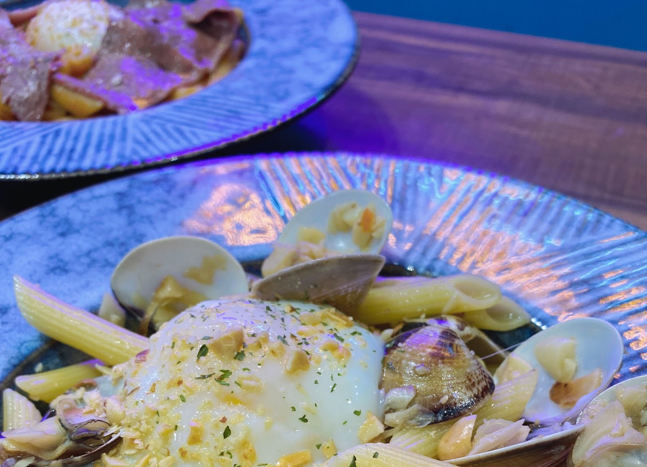 ?花生油蒜炒 白酒蛤蠣麵$159麵還有兩種選擇(直麵和筆尖)+70加點蛤蠣+20溫泉蛋 滿滿的蒜頭味給你滿滿的幸福感,妮妮非常喜歡吃蒜香,加點辣椒?️香氣四溢,保證讓你垂涎三尺,吃過難忘的好味道! ?喜歡白酒蛤蠣的你一定來品嚐看看! ?茄汁系列 安格斯牛$199+20溫泉蛋 充滿蕃茄的酸味搭配筆尖麵,也是我最常吃的口味之一,覺得蕃茄配牛肉真是好吃到不行!高級的安格斯牛片軟嫩,加上溫泉蛋挑戰你的味蕾層次! 如果份量不夠都還可以再加點喔! ?最後再來一個摩天輪拼盤$199 (薯條、雞米花、洋蔥圈、起司條、雞柳)一來就覺得好夢幻啊!讓我充滿著少女心的摩天輪!