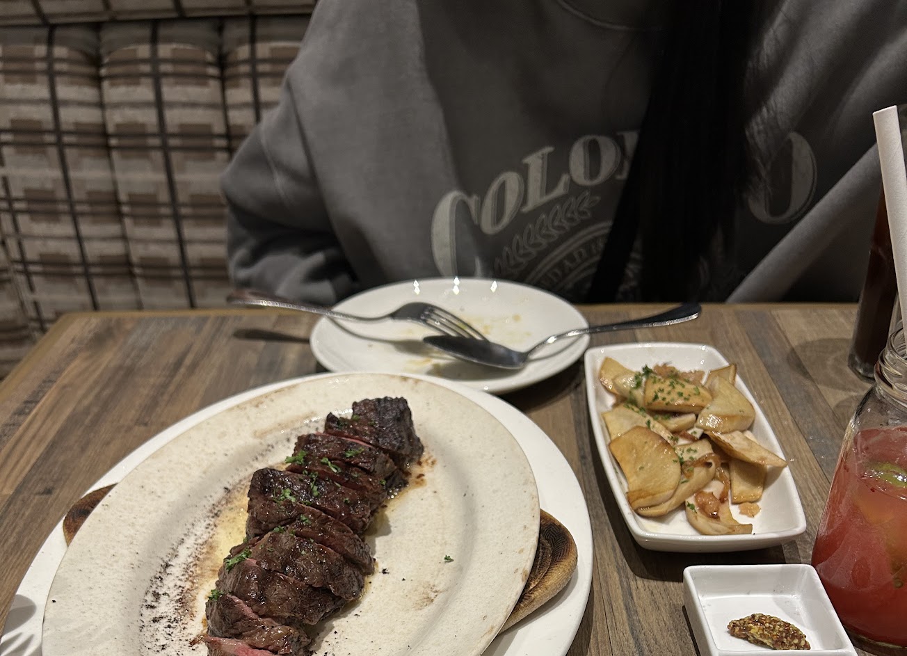 好險是3分熟,因為有瓷盤(?會在上面加熱,熟成後口感會偏硬,但整體起來軟嫩適中,推推而且有岩鹽/薄鹽醬油/芥末籽醬可以配,蠻建議嘗試看看,三種醬料各有特色!