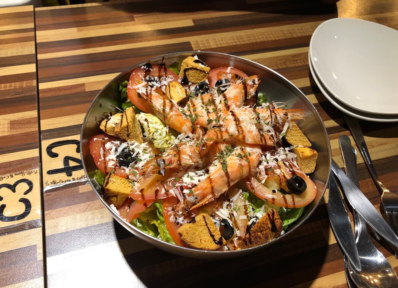 沙拉的話,份量不小,但鋼盆很容易不平衡,巴薩米克醋跟蘿美生菜本身就不太搭,算是吃粗飽不是吃精緻的。