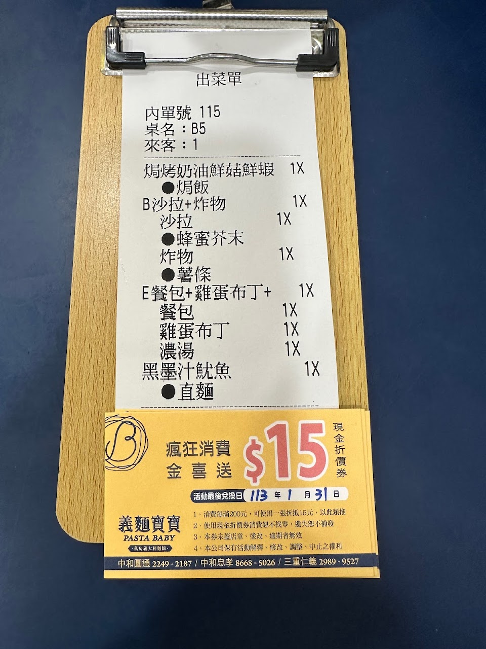 餐點:1