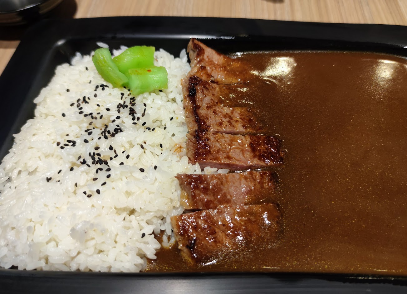 七點半詢問女店員是否可以內用時女店員和我說沒有咖喱了,並口口聲聲說已經賣完了!結果下一組經過的客人在外頭張望許久,沒想到再過五分鐘我看到他們入座了,就是剛剛那女店員帶他們入座了,那我是被她欺騙了嗎?說好的咖哩沒了,卻可以接三位內用客人,當下真的非常傻眼⋯⋯明明就說咖哩沒有了!妳怎麼可以說謊騙人呢?