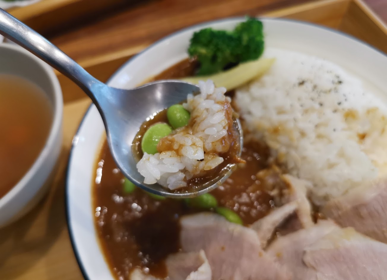 乾淨舒適的環境,美味可口的咖喱,偏日式風味,咖啡蔬果甜味與辣的剛好的辣度搭配完美,不管是豬肉或是烤雞腿,除了份量十足外,吃進嘴裡滿滿的滿足,鮮嫩的口感,十分推薦