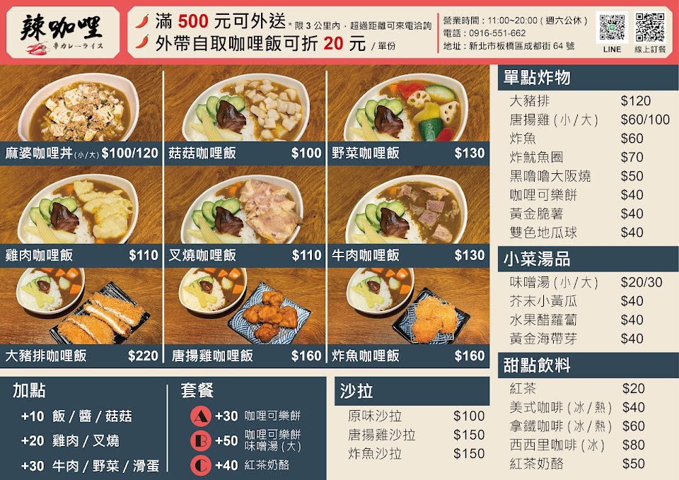 2024最新在地推薦餐廳的菜單_辣咖哩/滿500元可外送的菜單、圖片