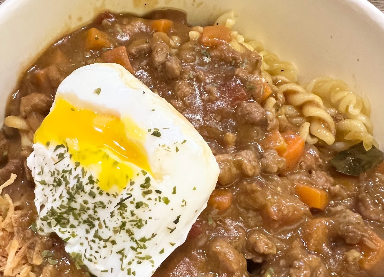 小吉咖哩醬本身是以豬絞肉炒洋蔥和紅蘿蔔丁去增添口感和味道的~