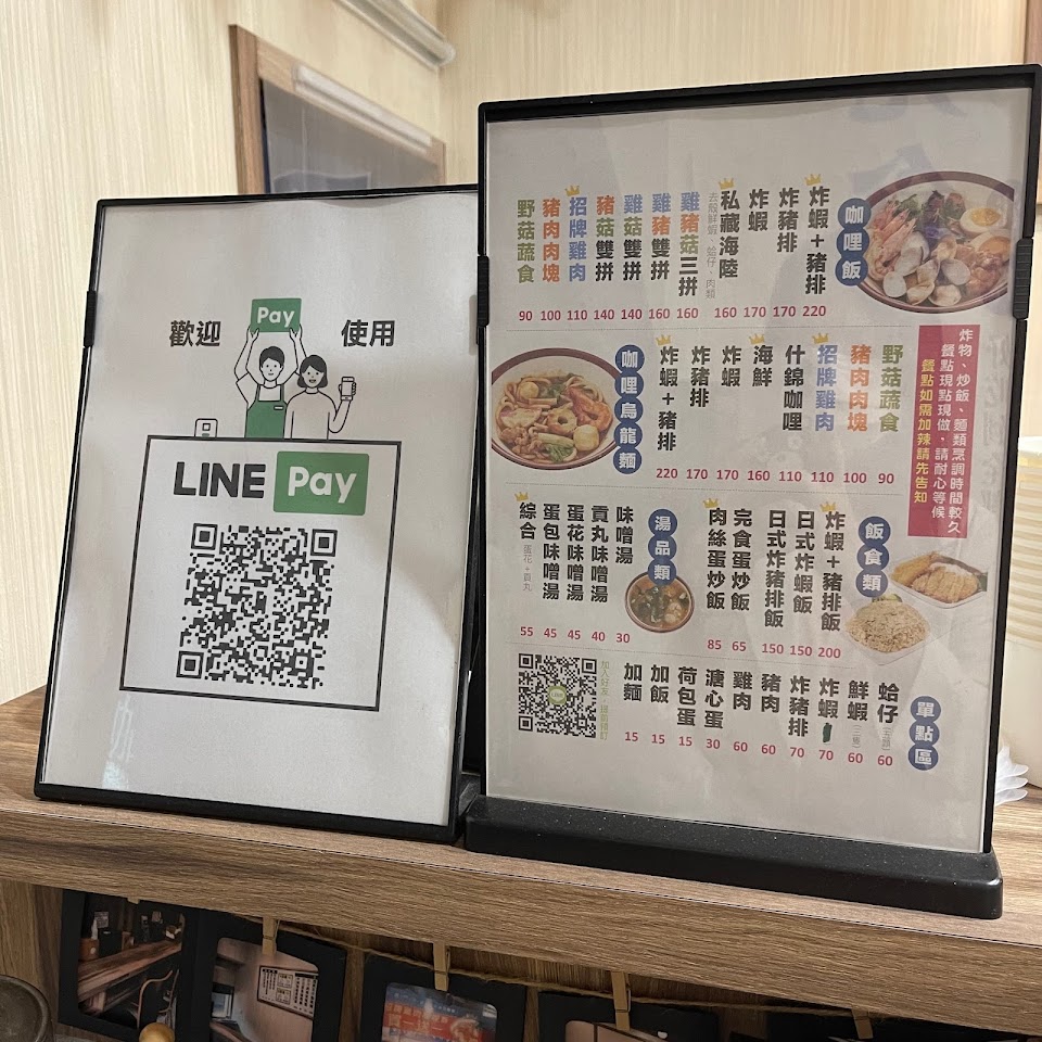 店內空間五個人差不多,點了炸蝦咖哩,外加套餐荷包蛋以及湯,以這個價位來說,份量夠,炸蝦給五條超出預期,配料也是不錯,喜歡紫洋蔥,油條是第一次在咖喱吃到,馬鈴薯我覺得可以再煮更久一點。