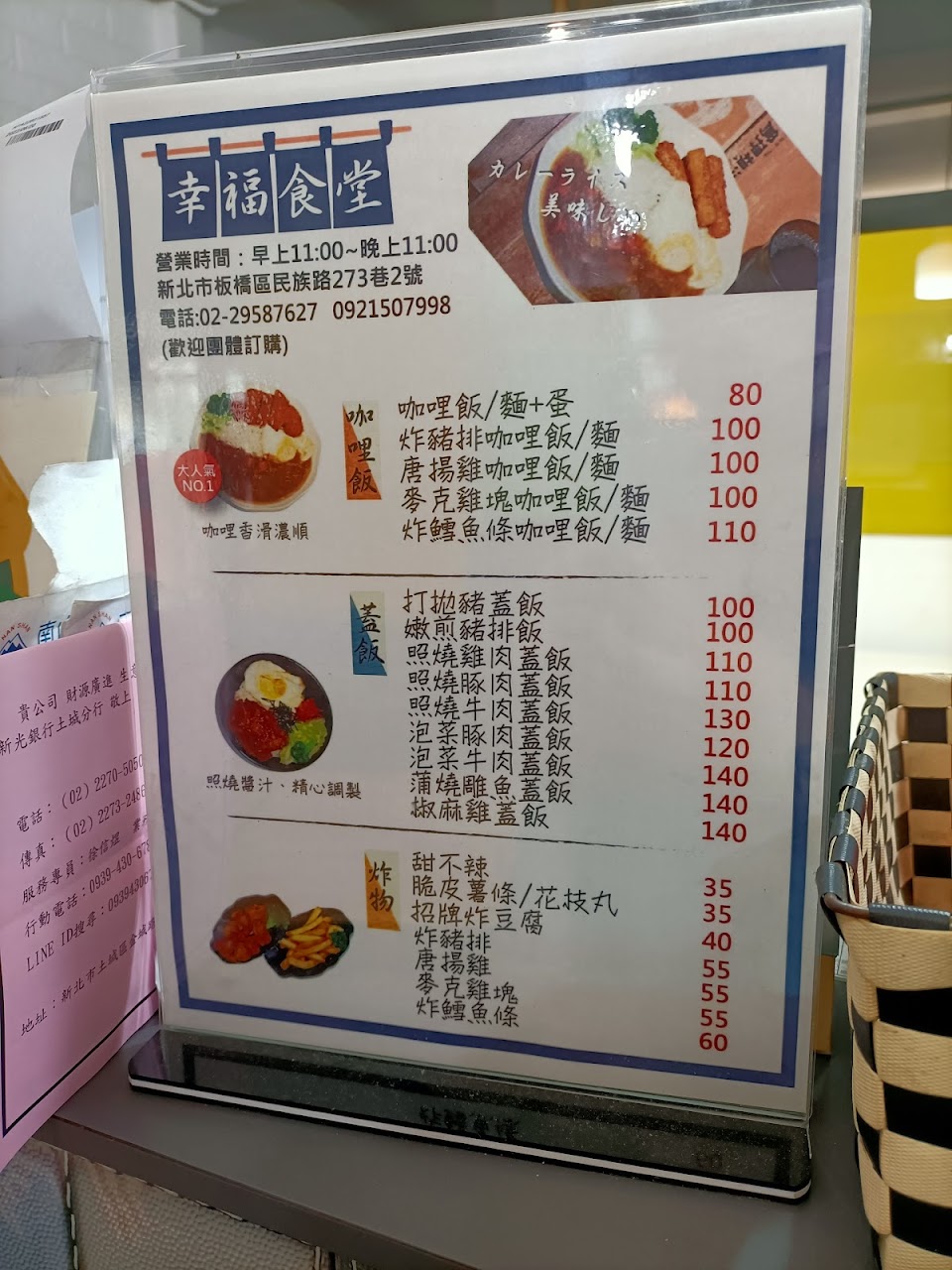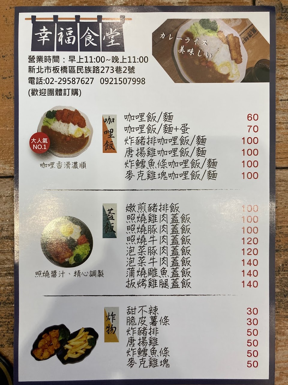 餐點新鮮、可口、乾淨、健康,安心吃、快樂嚐!板橋區民族路郵局附近,用餐、冰品的第一選擇—-幸福1號店。