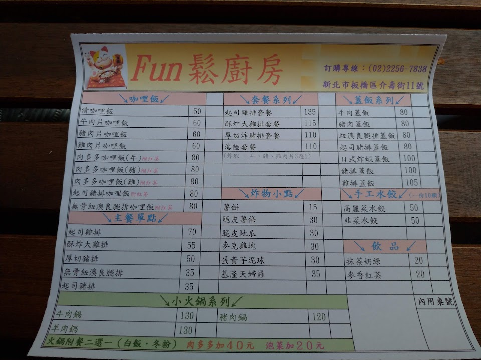 2024最新在地推薦餐廳的菜單_Fun鬆廚房的菜單、圖片