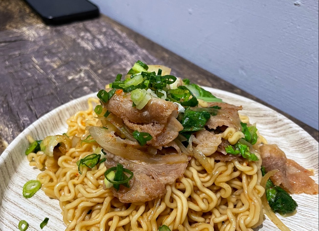 蔥燒豬肉蛋餅跟韓式炒泡麵好吃~