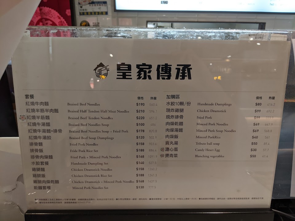 2024最新在地推薦餐廳的菜單_皇家傳承牛肉麵-亞東店的菜單、圖片