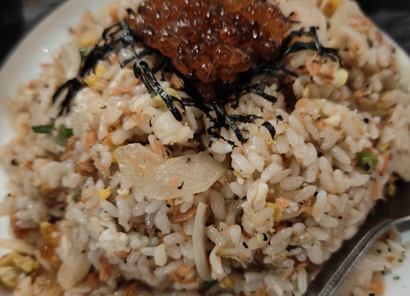鮭魚炒飯, 炸銀絲卷, 串燒, 麻糬