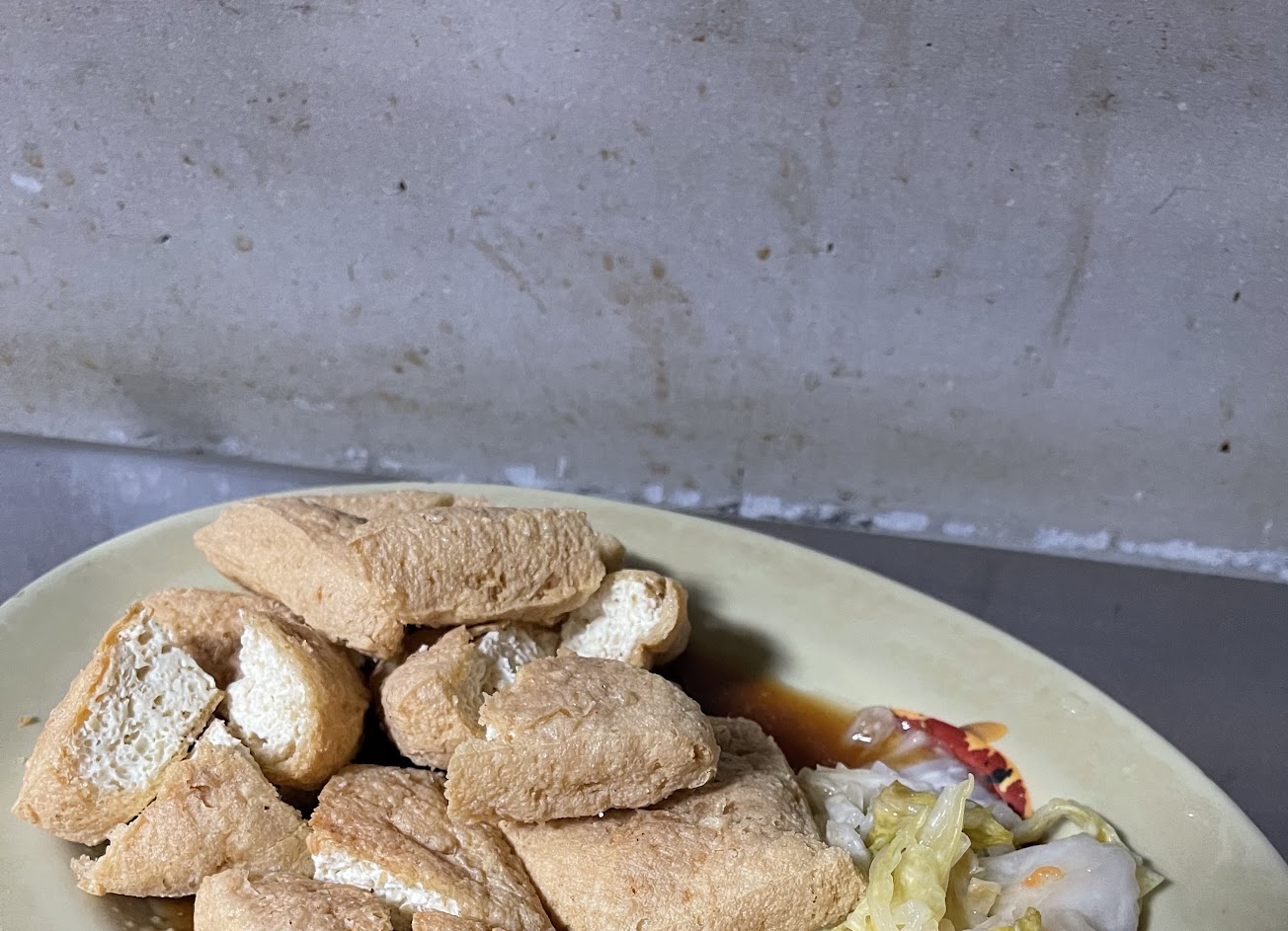 臭豆腐太硬超油,油鍋撈起來直接上桌,還沒吃過這種的,這就是特色吧!
