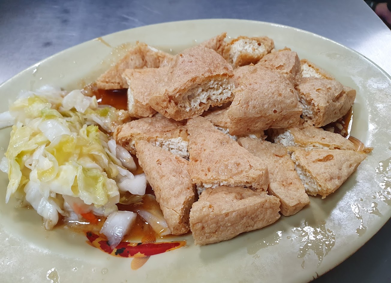 之前無意間吃過一次就念念不忘,覺得小籠包真D好吃,比花蓮公正包子好吃多了。但之前來吃好像還不用100,現在一盤要110了。然後那個炸雞蛋豆腐,照片是剛送上來還沒吃過的樣子,我真的懷疑人生,怎感覺很像炸剩的豆腐皮?
