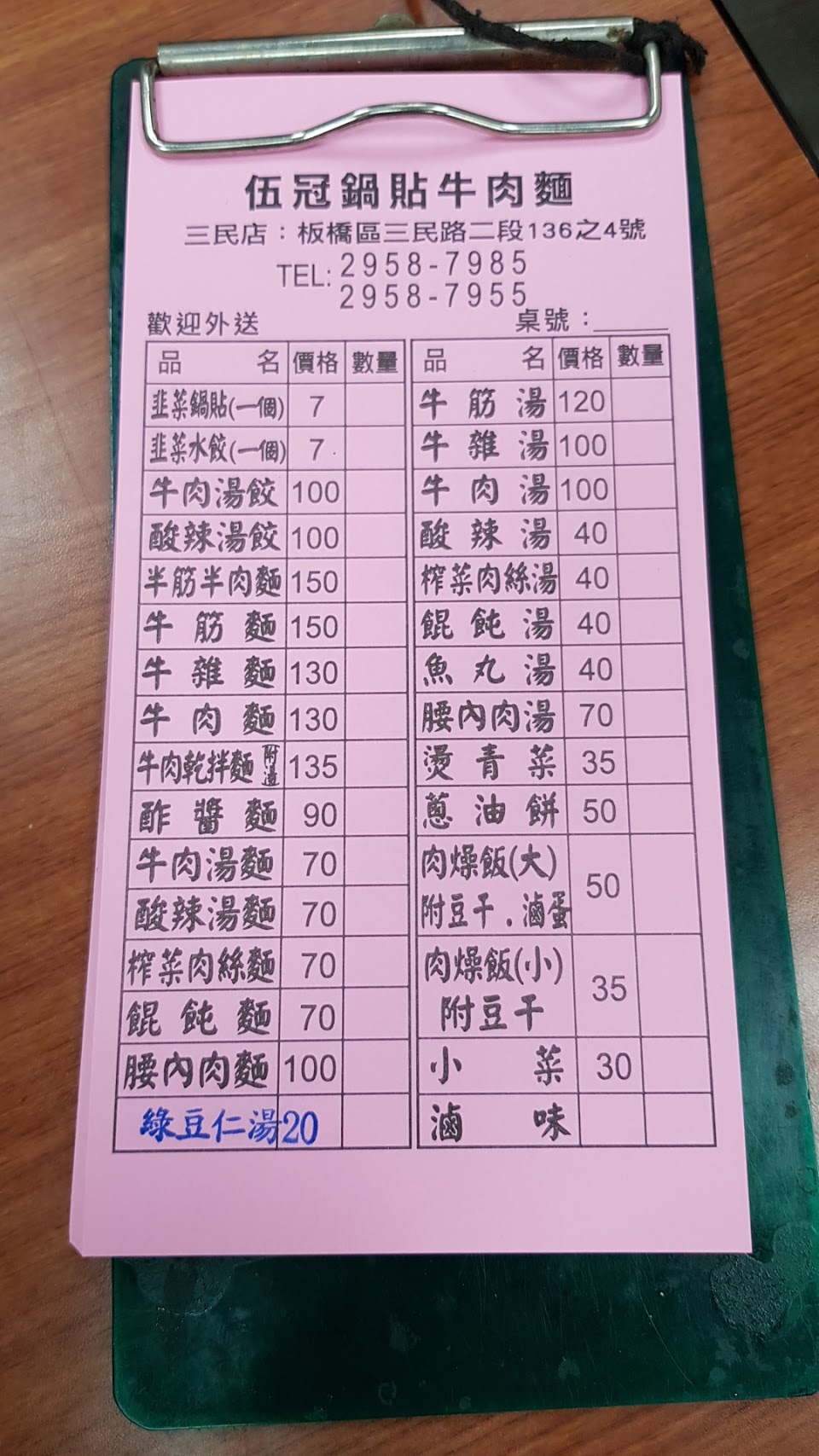 2024最新在地推薦餐廳的菜單_伍冠鍋貼牛肉麵(三民店)的菜單、圖片