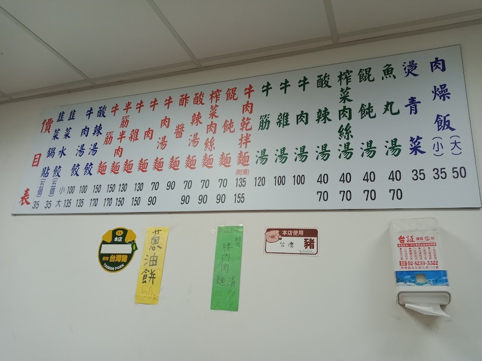 他的鍋貼是韭菜的只有一個口味, 一顆要7元, 牛肉麵還不錯吃,沒有建成牛肉麵的牛肉多